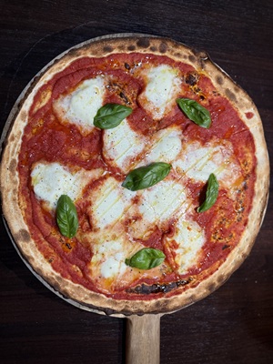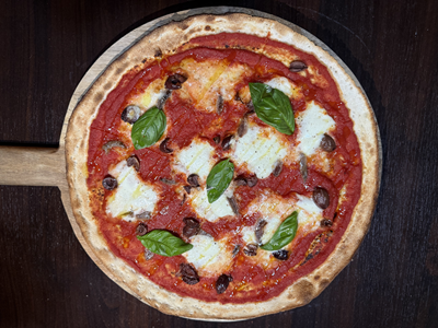 NapolitanaTomato base, buffalo mozzarella, anchovies, olives, topped with olive oil & cracked pepper×